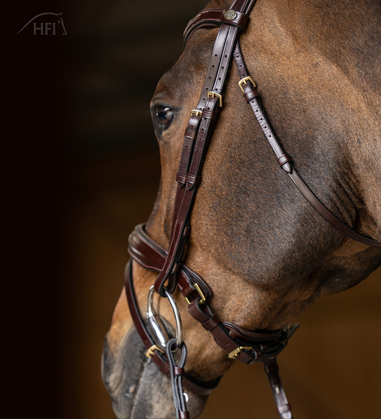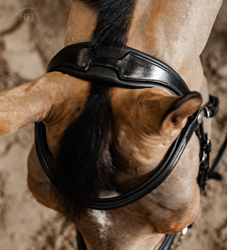 Large pull-back noseband (4 cm), padded and lined with soft leather