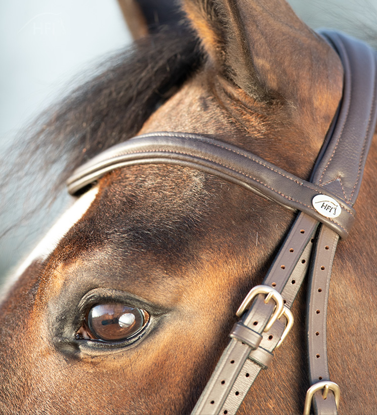 Têtière anatomique, frontal et muserolle en cuir très souple