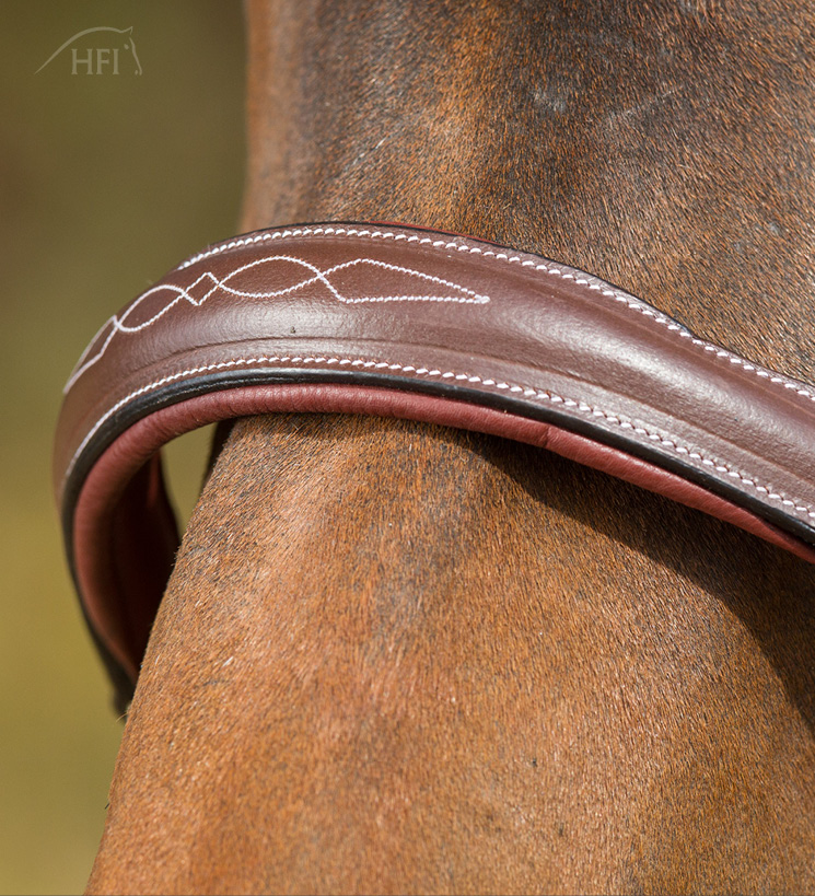 Nasenriemen mit weichem Leder gepolstert und bestickt