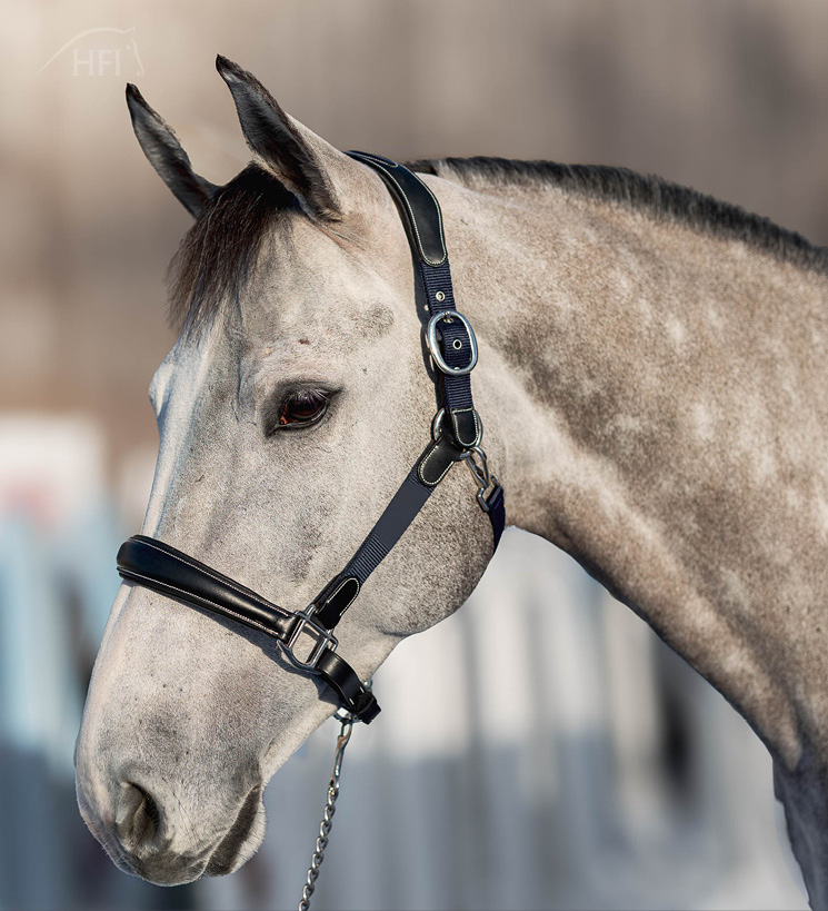 Anatomically shaped, double-adjustable headpiece, padded and lined with soft leather